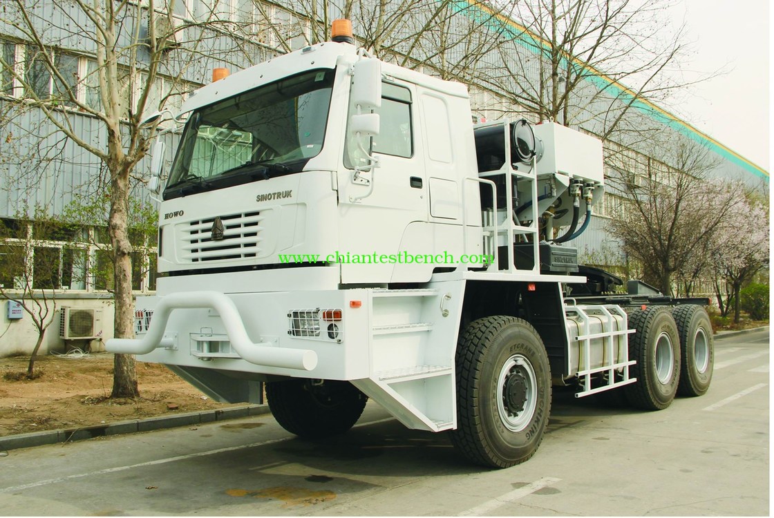 6x6 large transport vehicle adopts CNHTC HOWO cab, imported Cummins engine, ALLISON hydraulic torque converter, large ratio axles, enhanced suspension, etc. Equipped with high-end assembly, such as American Paccar hydraulic winch, JOST bolster, imported cylinder and pump valves, this vehicle is powerful, advanced and reliable. Its maximum towing total mass reaches 110t. It is mainly used on the road, the transition zone of road and gobi. Its overall performance is at the advanced level of the industry.